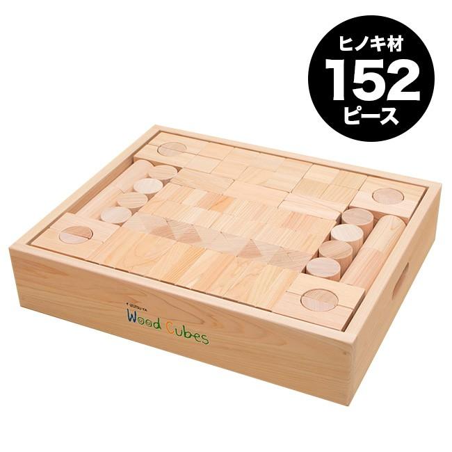 ウッドキュウブ つみき おしゃれ 152ピース箱 木のおもちゃ 四万十 ヒノキ材 H 152 積み木 1歳 1歳 知育 ブロック